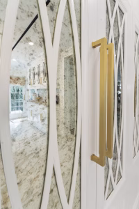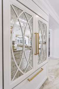 3. Mirrored Panels: To add a touch of glamor and create the illusion of even more space, we incorporated mirrored panels into the design. These reflective surfaces bounce light around the room, making it feel larger and more open while adding a touch of Art Deco-inspired elegance.