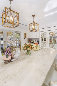 Antique Mirror Entry: Adding a touch of vintage glamor, we incorporated an antique mirror into the entry area between the family room and kitchen. This feature not only adds visual interest but also helps to bounce light around the space, making it feel larger and more open.