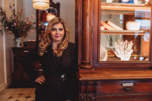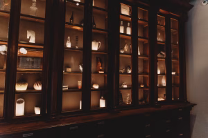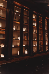 When you step into Quality Meats, you’re surrounded by an ambiance that blends rustic elegance with modern sophistication. Central to this inviting atmosphere is a beautifully restored cabinet that once served as a pharmacy fixture in Australia.