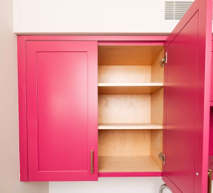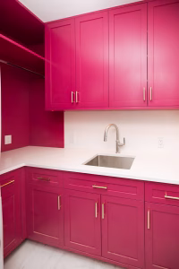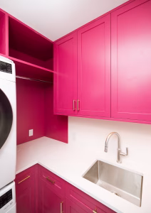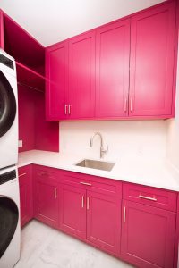 Don’t settle for standard solutions in a home that’s anything but standard. Whether you’re dreaming of a bold statement like this pink laundry room or seeking subtle sophistication for your kitchen or closet, our team is ready to bring your vision to life.