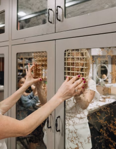 Brass Grills & Antique Mirrors – Blend old-world charm with modern craftsmanship.