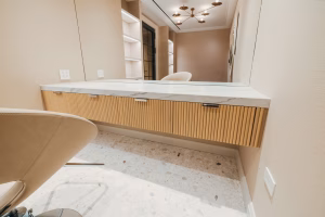 Your commercial space should feel intentional from the moment someone walks in. Custom-built millwork – like feature walls, reception desks, and lighting coves – can carry your brand’s aesthetic through every surface.