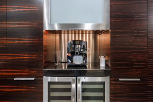 Some of the most luxurious millwork details are the ones designed not to be seen. Concealed hinges, integrated LED lighting, hidden storage doors, acoustically treated panels, soft-close hardware, and perfectly aligned grain patterns are all hallmarks of quality.