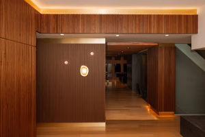 For instance, a luxury hotel might use rift-cut white oak throughout multiple spaces – from the reception desk to the wall paneling to the bar millwork – to create a unified identity. A high-end residential project may incorporate walnut cabinetry, trims, and shelving that complement one another without competing for attention.