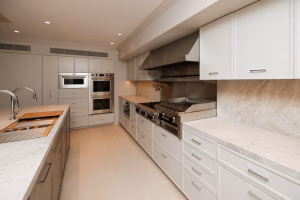 One of the hallmarks of a designer kitchen is how well it connects to surrounding spaces. In open-concept homes and apartments, the kitchen is often visible from the living or dining area. Custom millwork ensures visual continuity across these spaces.