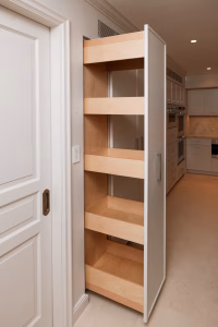 Pull-out pantries and vertical tray storage